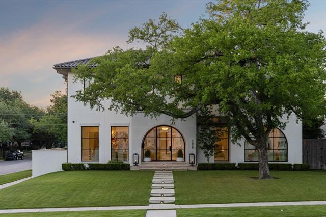 Stunning transitional home built by Danes Custom Homes on a 10,993 SF corner lot. Custom steel doors and windows with a stucco-limestone facade and concrete tile roof. A grand foyer with exquisite metal staircase, an airy open floor plan with white oak floors throughout provides effortless entertaining. The kitchen is a culinary dream, showcasing calacatta marble counters, dual sinks for prepping, built-in coffee maker, double ovens, double refrigerator with freezer drawers, expansive glass wine fridge and an adjacent butlers pantry. Luxurious finishes throughout, sleek dining and living areas. The veranda boasts large sliding doors for a seamless indoor-outdoor flow, a cozy fireplace with central heat & AC, that looks out onto the tranquil pool with manicured landscaping and turf yard. The master suite opens up to an elegant pool with a cascading fountain wall. The master bath is spa-like, grand marble shower, floating tub, his and her vanities, and separate walk-in closets.