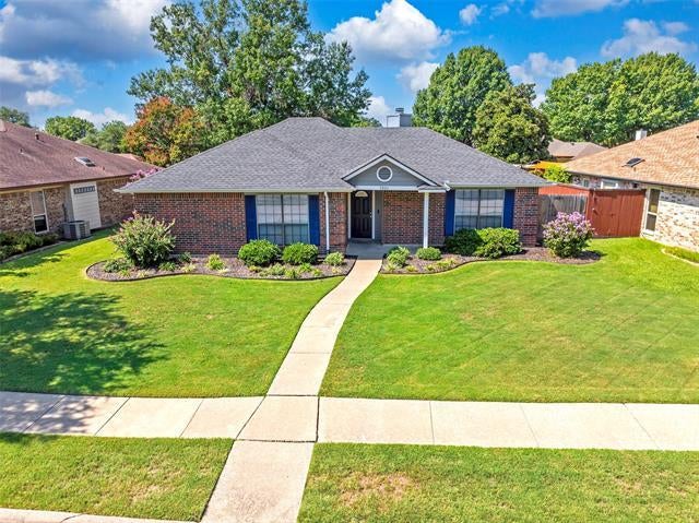 Discover this beautifully updated 3-bedroom, 2-bathroom home ideally situated in Rowlett, TX. Featuring fresh new paint throughout and an updated kitchen with granite countertops, this home combines modern sophistication with cozy charm. Enjoy tile flooring in the main areas, adding both durability and aesthetic appeal. The large living space serves as the heart of the home, boasting abundant natural light and a wood-burning fireplace that promises a cozy ambiance. The master bathroom has been thoughtfully upgraded with dual sinks and a tiled shower, creating a spa-like retreat for homeowners. Step outside to a large, fenced private backyard adorned with mature trees and detailed landscaping in the front, providing a serene outdoor escape. With no HOA, you have the freedom to enjoy your property to the fullest. Located with quick, easy access to George Bush Turnpike and just minutes from Lake Ray Hubbard, convenience and recreation are within reach. Don’t miss out on this gem!