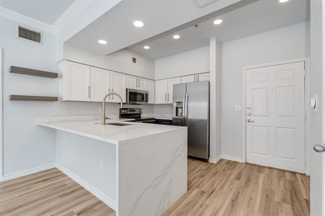This newly renovated 2 bedroom, 2 ensuite bathroom apartment is centrally located near Whole Foods, Highland Park, Uptown Downtown, Love Field airport, Medical District, Katy Trail, SMU, the Tollway, I-35, and US-75. Kitchen includes large space to cook, new appliances, large pantry, and breakfast bar. Unit includes washer and dryer hookup (open to offers for current washer and dryer). Each bedroom is similarly sized with large walk-in closets, as well as large windows that receive plenty of natural light. Walk out the French doors to the spacious plaza deck that includes a grill and plenty of space to dine. Complex has controlled access and includes a gated underground parking garage, pool, gym, on-site management, Amazon lockers, club house, elevator, and plenty of green space to walk your dog each day. HOA dues include high speed internet, cable, water, and trash!