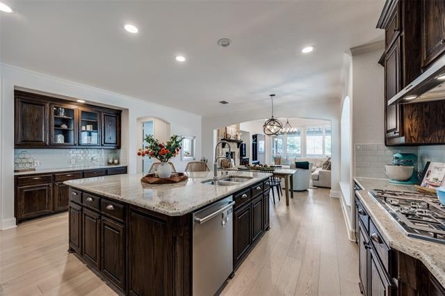 This stylish 5-bedroom, 4-bath home offers a smart layout with two bedrooms down and three up, plus a private study with built-in cabinetry—perfect for work-from-home flexibility. You’ll love the white oak engineered flooring, freshly painted light walls, rich dark cabinetry, plantation shutters, and updated lighting throughout. The open kitchen features granite counters, a glass tile backsplash, and abundant cabinetry, flowing seamlessly into the family room with a stone fireplace—ideal for cozy nights and entertaining. The spa-like primary suite boasts a soaking tub, separate shower, dual sinks, and a spacious walk-in closet. Upstairs, enjoy white oak flooring on the stairs, hallway, and game room, plus a dedicated media room for movie nights or casual hangouts. Step outside to a covered patio with pergola and low-maintenance turf grass—perfect for relaxing or hosting guests. Located in Star Creek with top-rated schools, community pools, trails, and easy access to shopping and dining—this home truly has it all!