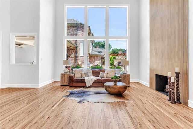 Beautifully renovated by renowned KP Construction. Over $150K in remodeling done June 2025 in this luxurious home in the prestigious Gleneagles Country Club area blends modern elegance with timeless comfort. The home features a fully updated kitchen and bathrooms new flooring fresh paint throughout and sophisticated upgrades in the main bedroom dining and family rooms. Step through the grand iron door into soaring 18-ft ceilings and floor-to-ceiling windows that showcase stunning views of the backyard oasis. Interior highlights include hand-scraped hardwood floors wood-beamed ceilings two gas fireplaces a wet bar with ice maker and a chef’s kitchen with Thermador range Sub-Zero refrigerator wine fridge and more. A private office doubles as a 6th bedroom for added versatility. Recent updates include a brand-new second-floor AC unit (2025) Tesla solar panels with battery backup and sell-back capability and a new pool system (2025)—bringing both luxury and efficiency. The outdoor living space features a beautifully designed pool built-in grill and stone fireplace. Located in a quiet sought-after neighborhood near top schools Legacy West and Gleneagles Golf Course this home is sure to impress from the moment the door opens.