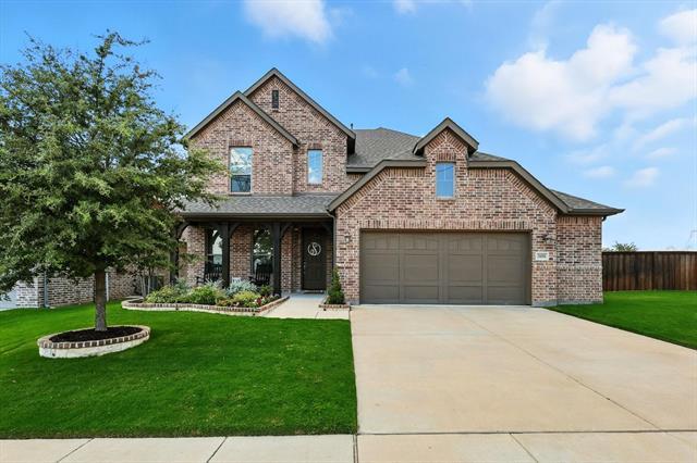 Built by Ashton Woods, this stunning home is located in the highly sought-after Canyon Falls community within Argyle ISD. The elongated foyer opens to a private study with built-ins and French doors, while the gourmet kitchen offers granite countertops, a large eat-in island, that flows seamlessly into the family room with its dramatic two-story stone fireplace. Hardwood floors run throughout the main level. Motorized shades add ease and sophistication to this beautiful home. The home welcomes you with a charming front porch, perfect for relaxing and enjoying the neighborhood feel. Out back, take in breathtaking sunset views from the extended covered patio with outdoor kitchen and mounted TVs. The oversized lot has no neighbors on one side and backs to protected green space and community trails, creating both privacy and connection to nature. A spacious side yard allows room for a future pool, playground or let the pets roam free! Upstairs includes three bedrooms, two bathrooms, and a game room, offering space for everyone. The epoxy-finished extended garage with EV charger completes this home with style and function. Canyon Falls offers resort-style amenities including multiple pools, parks, fitness center, dog park, miles of hiking and biking trails, and community events. HOA dues cover front yard maintenance, internet, and cable. A true gem in a community oriented neighborhood!