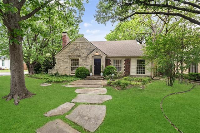 Welcome to prime East Dallas living in this Wilshire Heights Tudor Revival Cottage just steps away from Mockingbird Elementary and Lakewood Village. Surrounded by mature trees on a quiet oversized corner lot, this home boasts beautiful hardwood floors and original touches throughout. The open floor plan features 2 bedrooms and an office, with a wonderful flow of indoor and outdoor living and entertainment. The kitchen opens to a large back deck, which overlooks the turfed yard, a seating area with fire pit, and a dog run all enclosed by a privacy fence.