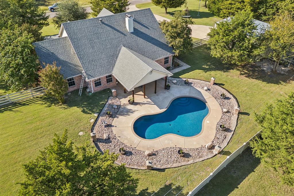 Welcome to your private oasis at 184 Lopez Drive! Tucked away in a serene acreage neighborhood within Howe ISD, this rare find delivers generous space and total freedom—no HOA restrictions. Step inside this thoughtfully designed 4-bed, 2-bath residence and discover a blend of cozy comfort and style with energy efficient features. The interior flows effortlessly with an open-concept layout ideal for both day-to-day living and entertaining. A central living area invites gatherings, while abundant windows frame lush green views. The heart of the home — the kitchen — is well-equipped and positioned for both casual dining and hosting. The primary suite is your personal retreat, complete with generous closet space and a spa-like bath. Three additional bedrooms and a full bath ensure room for family, guests, or a home office. Step outside and be captivated by the outdoor amenities. A sparkling in-ground, saltwater pool beckons on warm days, with a covered patio that’s perfect for lounging, hosting barbecues, or enjoying tranquil evenings under the stars. The expansive acre lot offers privacy, room to roam, and endless possibilities for landscaping, gardens, or outdoor play. For the hobbyist, maker, or entrepreneur, this property includes a detached metal garage shop—a versatile space ready for woodwork, art, car work, storage, or whatever your passion demands. It’s your own creative HQ right on-site. This property is ideal for those who crave space, flexibility, and the luxury of room to breathe. Whether you’re a pool lover, hobbyist, or just want peace and privacy, 184 Lopez Drive delivers.